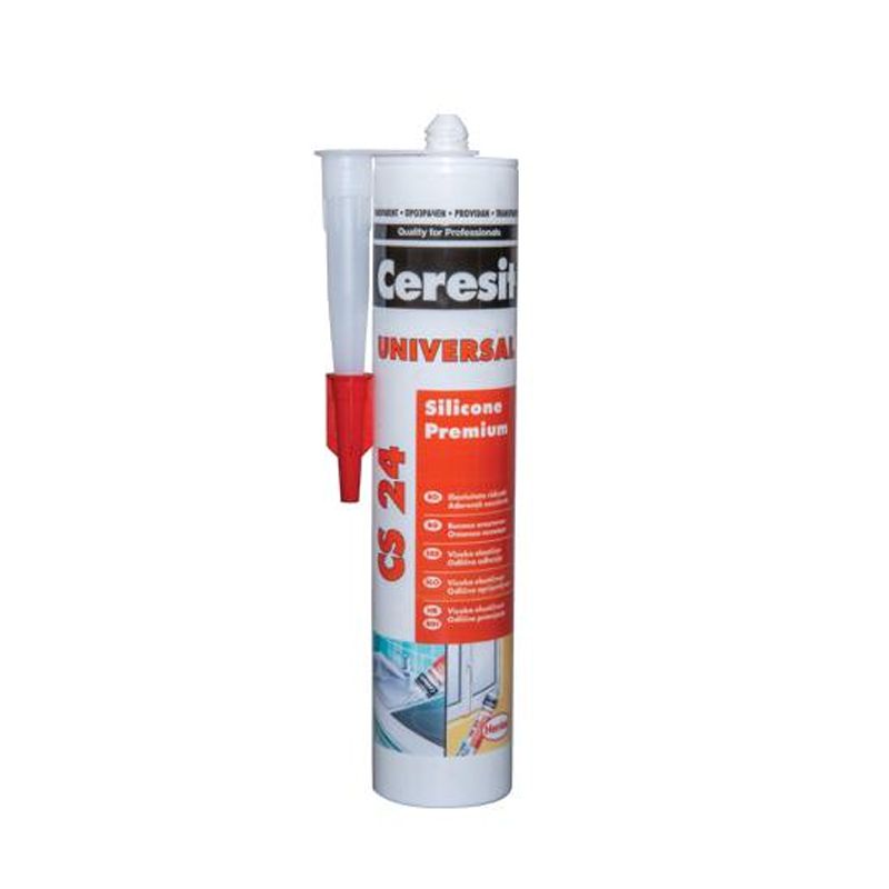 Silikon univerzalni beli Ceresit CS 24 280ml pogodan za zaptivanje spojeva na prozorima, vratima, kao i za zaptivanje dilatacionih spojeva.