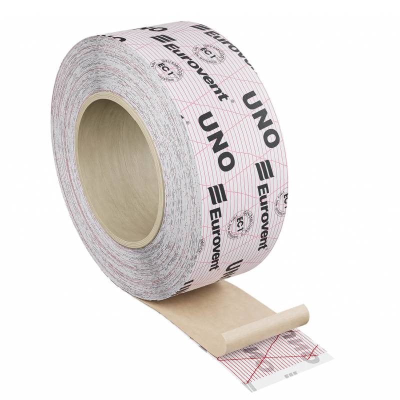 Jednostrana traka Eurovent UNO s podeljenim linerom 50/50 mm. Koristi se za lepljenje i popravak paropropusnih folija, krovopokrivnih membrana i drugih građevinskih proizvoda na bazi plastike. Izrađena od polietilenske folije ojačane poliesterskim vlaknima i premazana specijalnim akrilatnim disperzivnim lepilom. Zaštićena odvajajućim silikonskim papirom.